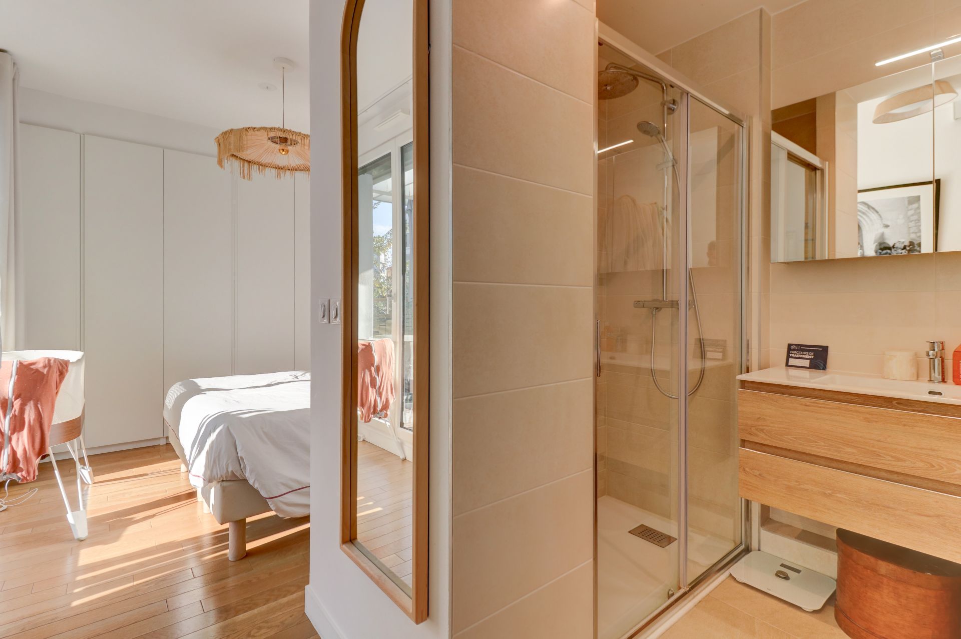 Ce bien aux beaux volumes se distingue par la qualité de ses prestations et son agencement fonctionnel. Il se compose d’un séjour lumineux avec cuisine aménagée et équipée, ouverte sur l’espace salon et dînatoire, offrant une belle pièce de vie conviviale. Côté nuit, vous trouverez deux chambres, dont une suite parentale, ainsi que de nombreux rangements sur mesure.