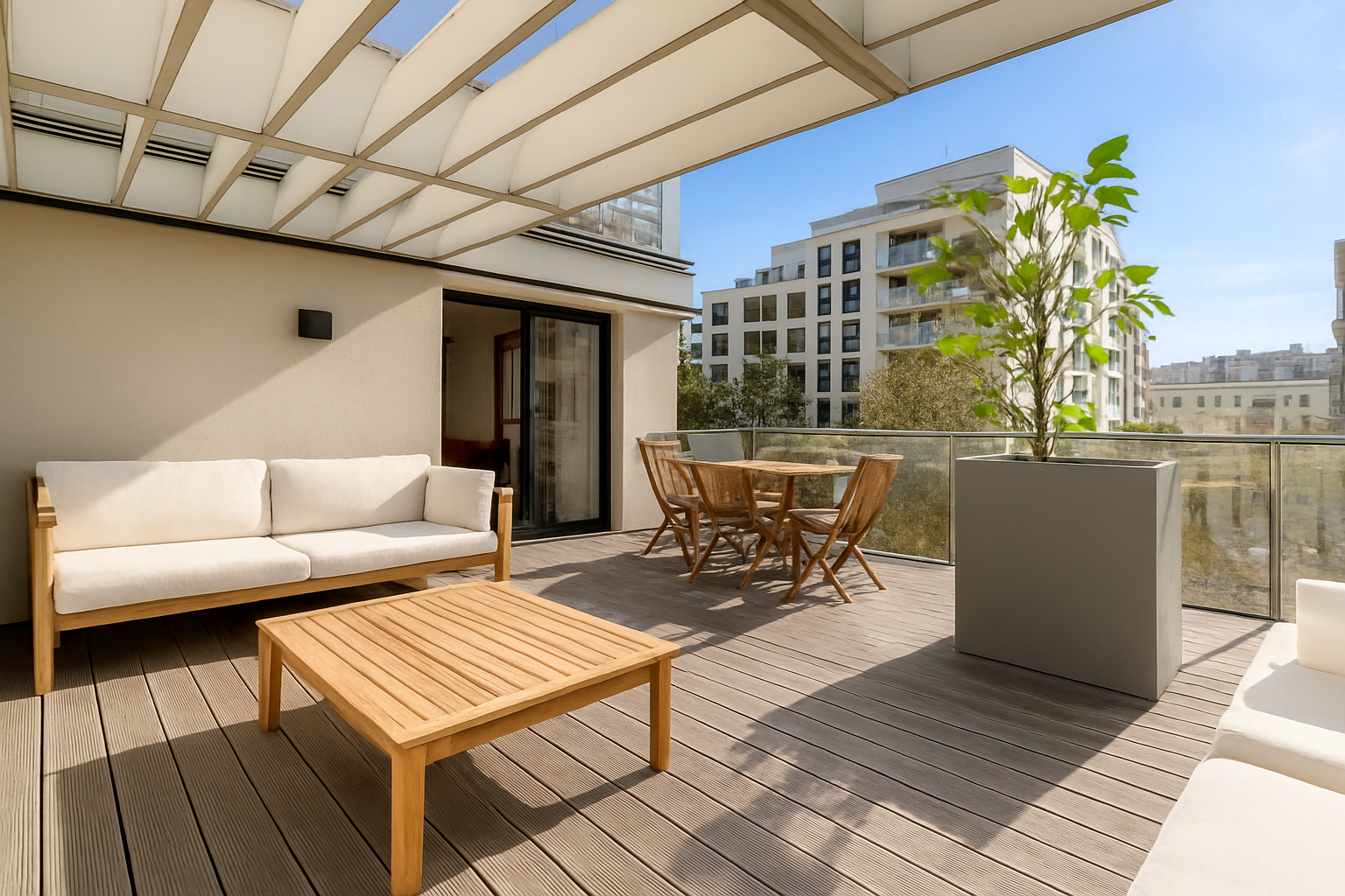 Une spacieuse terrasse de 27 m² prolonge agréablement l’appartement, offrant un véritable espace extérieur pour profiter des beaux jours ou recevoir en toute convivialité.